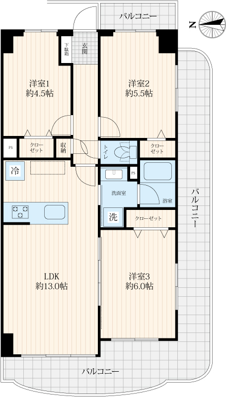 64.65㎡ / バルコニー 23.77㎡