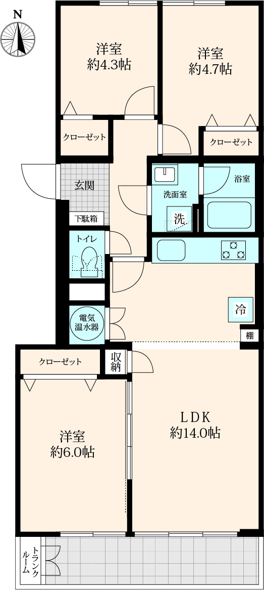 66.00㎡ / バルコニー 7.57